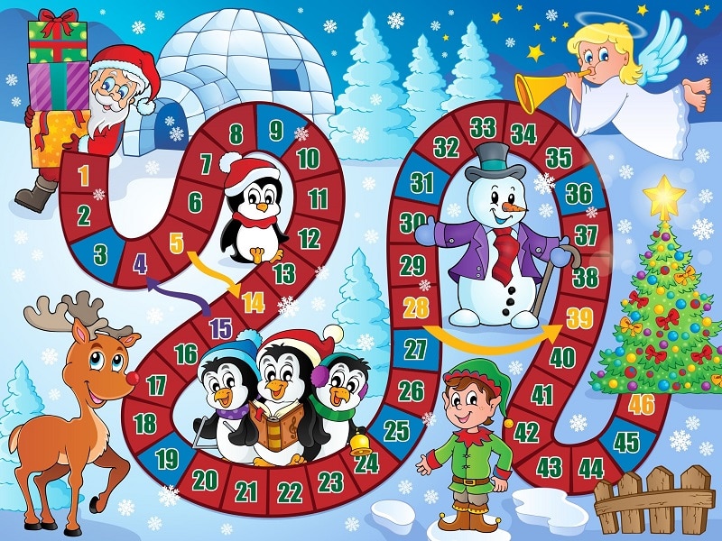 Le jeu du Père Noël est un jeu de plateau à imprimer sur le thème de Noël. C’est un jeu type jeu de l’oie que vous pouvez faire avec des enfants de tout âge. Idéal pour les petits qui apprennent à compter et amusant pour les plus grands qui pourront jouer à ce jeu à imprimer en famille.